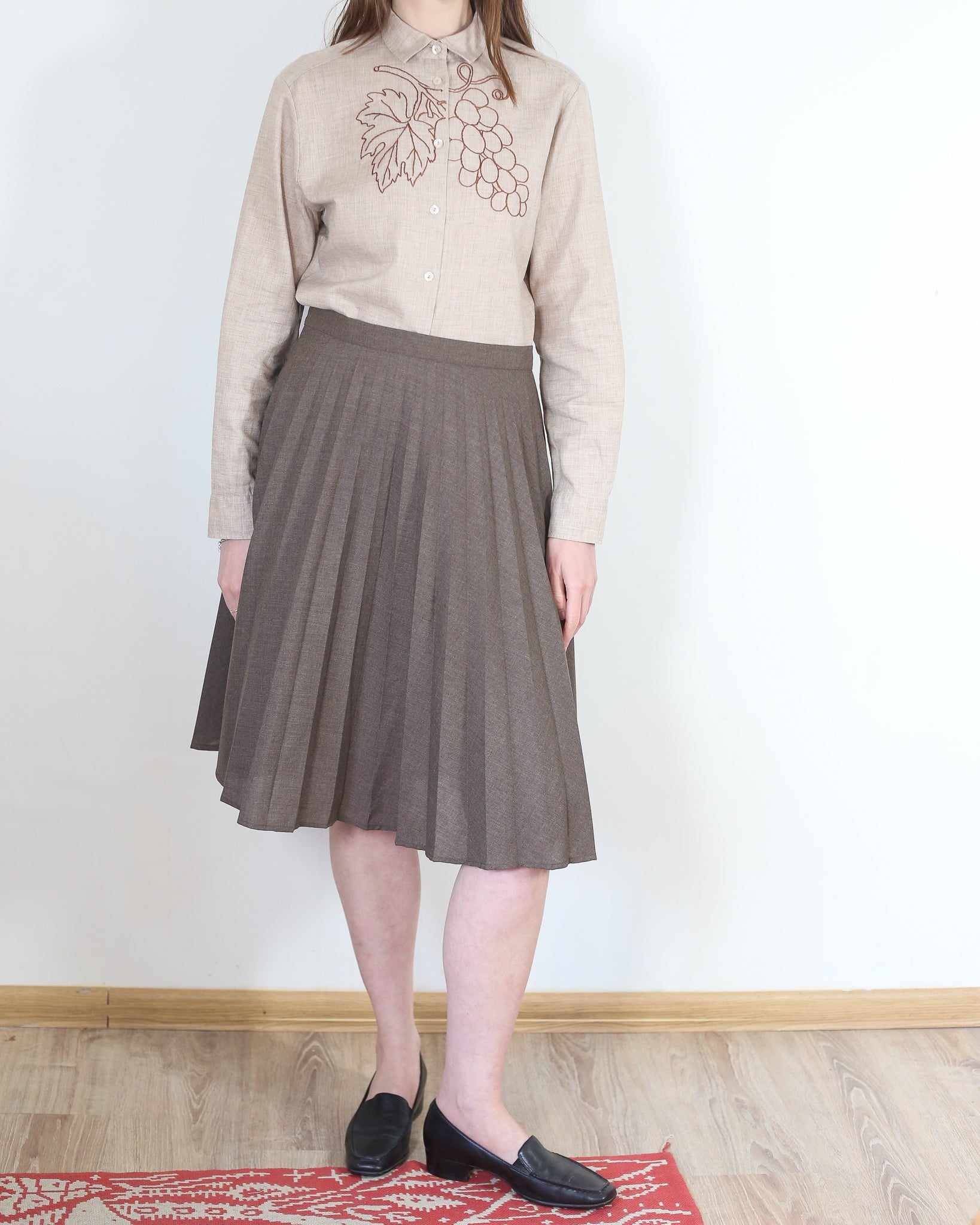 light brown button up shirt with hand embroidery detail by me (so really one of the kind)